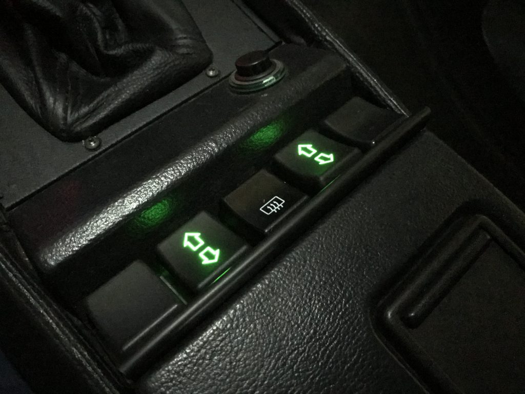 Finally, I was motivated to deal with something that had been bothering me for a long time – the alignment and overall condition of my center console switches. I bought a brand new rear defroster switch from DMC Europe as well as the upgrade LED-illuminated window switches from DMC Houston and installed them in the so-called “Mattaligner” from PJ Grady. This alignment frame provides a stiff surface for the switches to mount to, as opposed to the flimsy cardboard of the center console – and lets them sit straight and without constantly popping out. Combined with the much improved feel of the new switches, this goes a long way towards making the interior feel solid and modern.